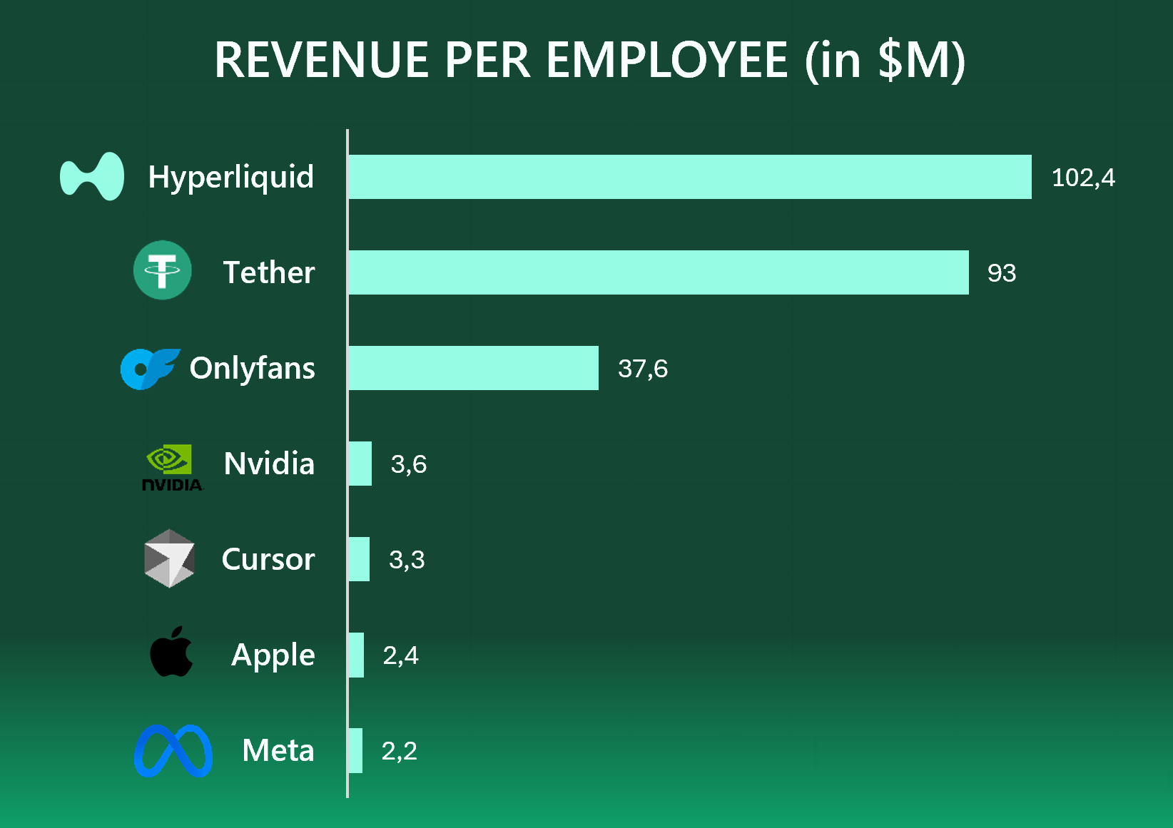 根据某份报告,Hyperliquid 的人均年收入高达 1.024 亿美元,这使得它成为了全球人均收入最高的公司之一。