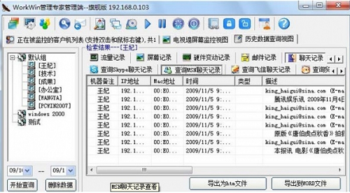 7、可以查看局域网中所有员工机的QQ聊天记录,MSN聊天记录等等;