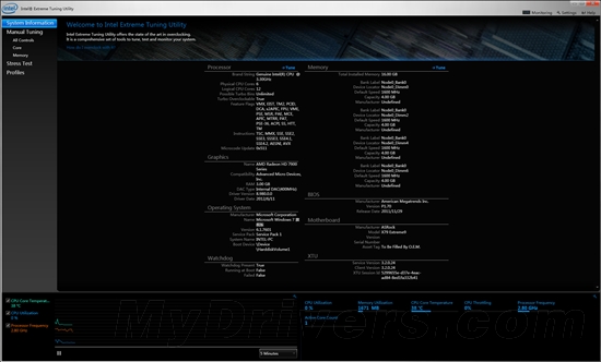 Intel Extreme Tuning Utility顾名思义是Intel官方推出的一款超频工具,能够对处理器、内存和系统时钟进行精确调整,并监控温度、电压和风扇速度。